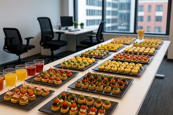 Закуски должны быть порционными, чтобы сотрудники могли брать их без необходимости использования сложных приборов.